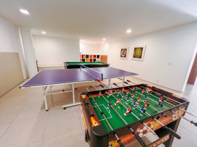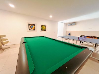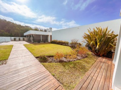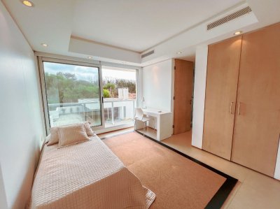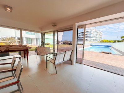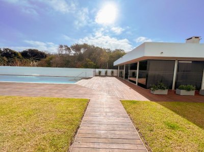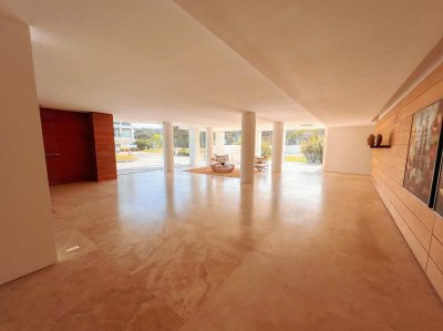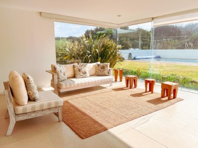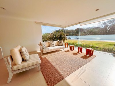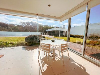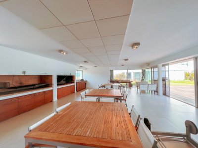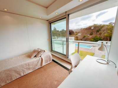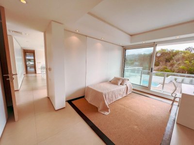 Los seis dormitorios en suite, espaciosos, iluminados con grandes ventanales, Placard y baños. El Living de frente al mar con salida a terraza privada y piscina propia. Dos salas completas con hogar a leña y televisión, oficina definida con opción a integrarse al salón del living.