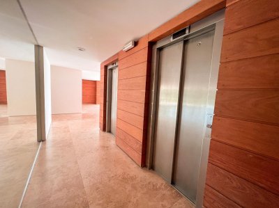 El edificio comprende 7 pisos y un total de 13 apartamentos. En planta baja, dos ascensores principales y uno de servicio.