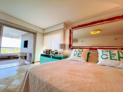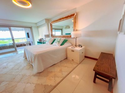 Características de la unidad: Tres dormitorios en suite, espaciosos, iluminados con grandes ventanales, Placard y baños grandes. La suite principal con salida a la terraza y vista al mar. Dormitorios secundarios con balcón propio y vista hermosa a los jardines y la piscina.