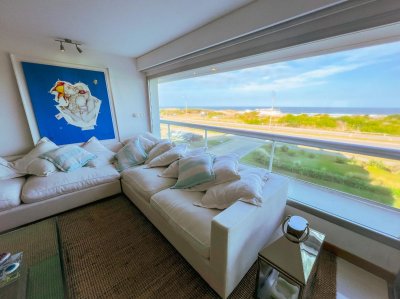 El apartamento esta ubicado en un semipiso en uno de los complejos de la más alta categoría en Punta del Este, en un entorno espectacular. Sobre el mar, rodeado de bosques, en una excepcional ubicación, cercano a la parada 30 de La Brava, queda a minutos del centro de Punta del Este y cercano a La Barra, en zona turística de gran valor. Apartamento en la primera fila frente al mar.