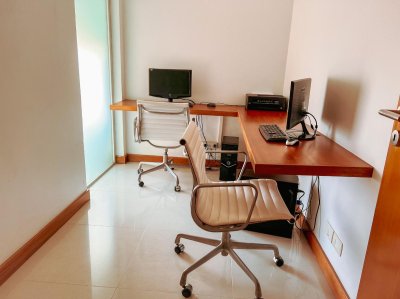 Gran área de cocina con comedor diario, gran ventanal soleado con estilo moderno, por la cocina se accede a el área de lavandería también con mucho sol, además cuenta con una lavandería externa propia del edificio en el primer piso, dependencia de servicio con ventilador (se puede utilizar como 4° dormitorio). La unidad cuenta con todas las áreas soleadas, aire acondicionado en todas las habitaciones.
