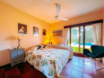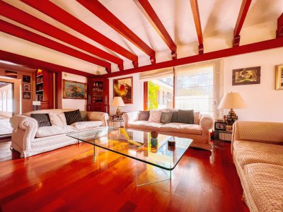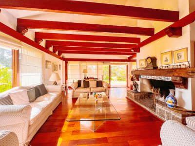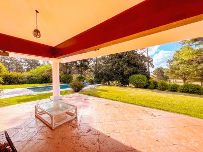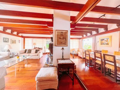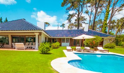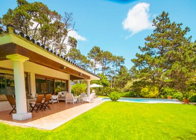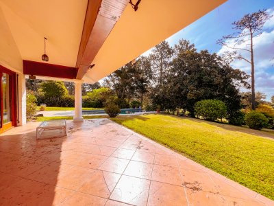 La casa esta ubicada en un terreno de 4.000 metros, que lindan con los campos de Golf y le confieren amplitud y una vista espectacular al fondo de la casa.