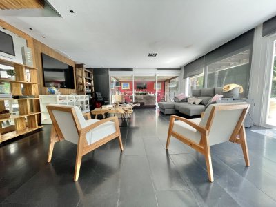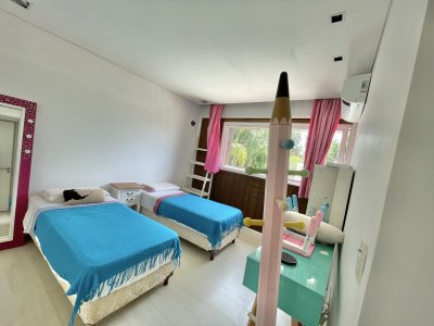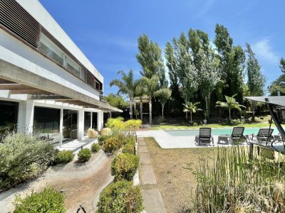 Casa bien construida en Barrio Privado La Arbolada. Amplio espacio de sala y comedor integrado a una cocina grande y moderna, bien equipada y socialmente funcional. Consta de 5 dormitorios en suite, todos con armarios espaciosos. Calefacción en toda la casa. Incluye área de huéspedes y oficina, dependencia de servicio con baño, lavadero y piscina climatizada integrada al jardín y la casa. Barbacoa cerrada con cava.