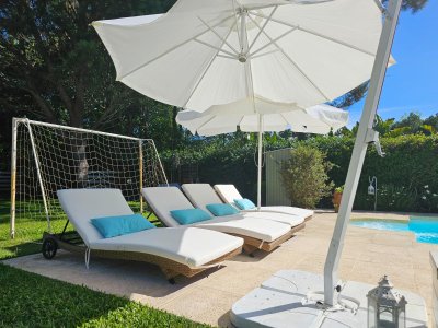 Hermosa barbacoa cerrada que se abre al parque, donde encontrarás un parrillero y un horno a leña, con estar y comedor.