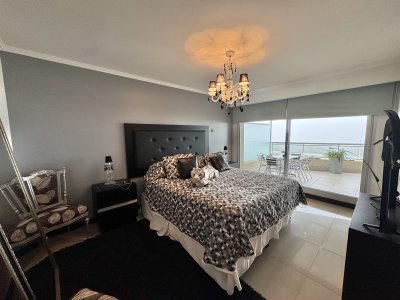 Espectacular apartamento en venta y alquiler en Edificio Torre Lobos. Unidad amplia distribuidos en 187 mts propios. Cuenta con living comedor amplio y luminoso con salida al balcón con vista al mar para disfrutar todo el año. Cocina definida con lavadero , 3 dormitorios en suite , principal al frente con salida al balcón , muy lindo vestidor. Dependencia de servicio con baño. Cuenta con aire acondicionado y losa radiante sectorizada.