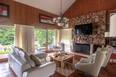 En su interior posee un amplio living con hogar a leña y comedor con acceso al parrillero en galería, además ofrece la comodidad de 3 dormitorios, baños, Cocina definida con acceso a la dependencia de servicio, lavadero y despensa.