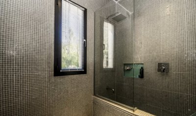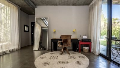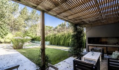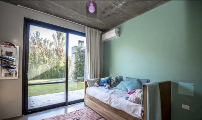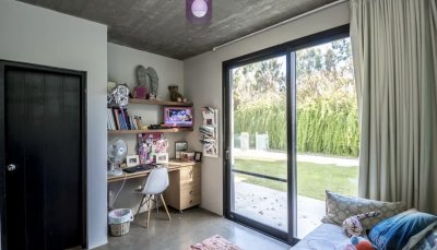 La casa se desarrolla en una misma planta, los 3 dormitorios tienen grandes puertas ventanas con salida al jardín con piscina.
