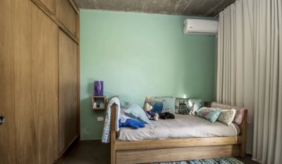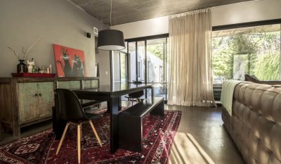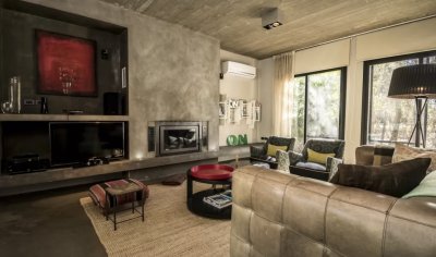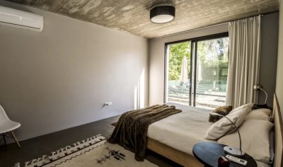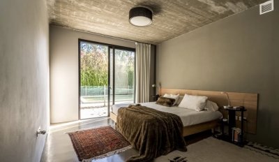 Moderna casa con techos de hormigón a la vista y pisos de microcemento alisado.