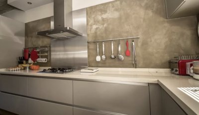 Cocina en forma de L con sector de lavadero y entrada secundaria, la cual lleva al dormitorio de servicio.